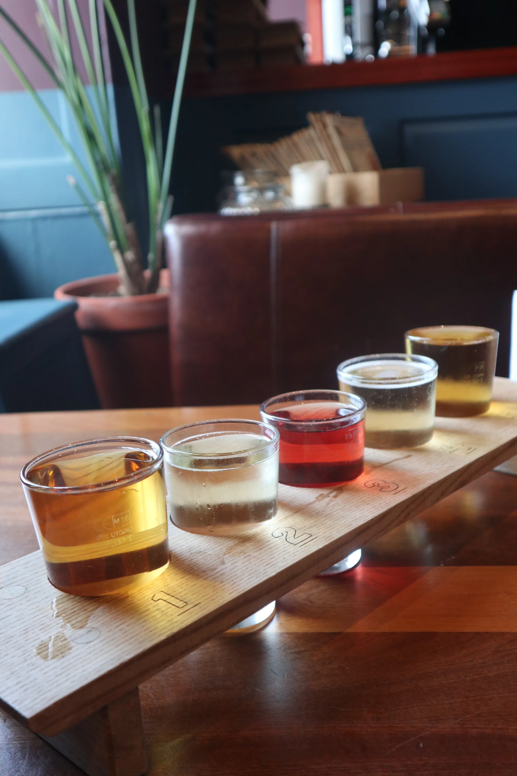 Along with a warm welcome we were shown to our indoor sea-view seat. I have to say, there is so much more room in the Falmouth restaurant (compared to Fistral) making it that little more intimate. To begin with we were offered the Cider tasting board - you get the option to try 5 different 1/3 ciders selected from their onsite Cider Masters for just £8.50! You also receive an information card which explains the origin, ingredients and percentage of each cider. Personally, my favourite was the Hawkes Soul because it tasted like white wine. Polgoon Scumpy also had an interesting taste; it’s a 7% cider so you can see why the students like The Stable on a student night….